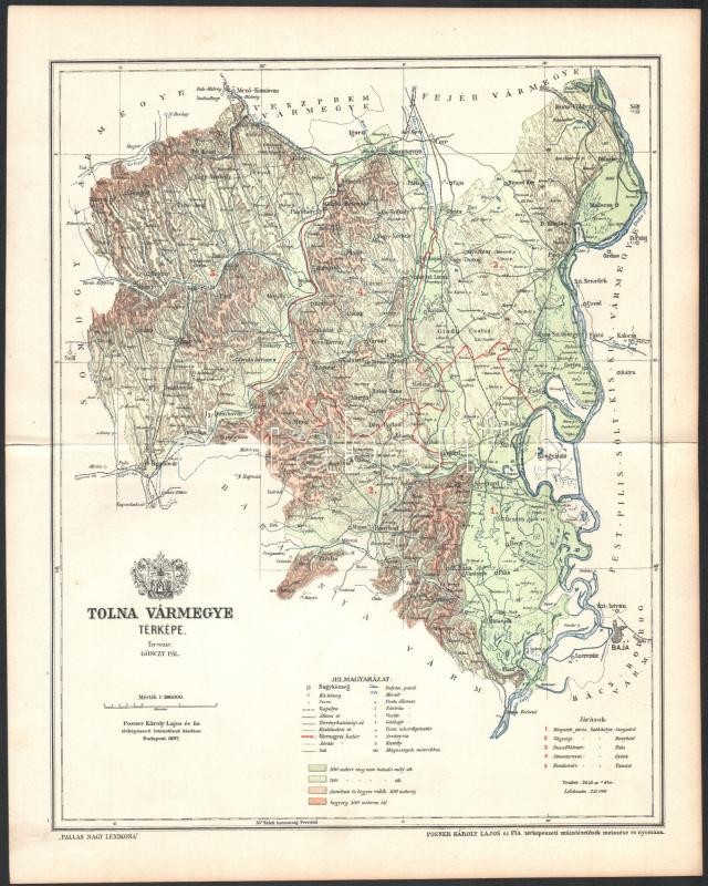 Leírás: 1897 Fejér vármegye térképe, rajzolta: Gönczy Pál, kiadja: Posner Károly Lajos, 30×24 cm