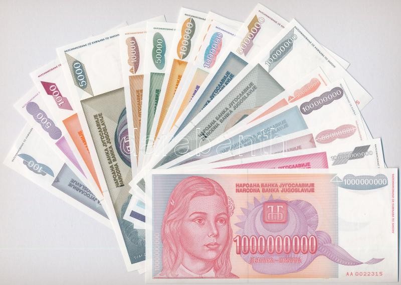 Leírás: Jugoszlávia 1992-1993. 100D - 10.000.000.000D (16xklf) T:I,I-