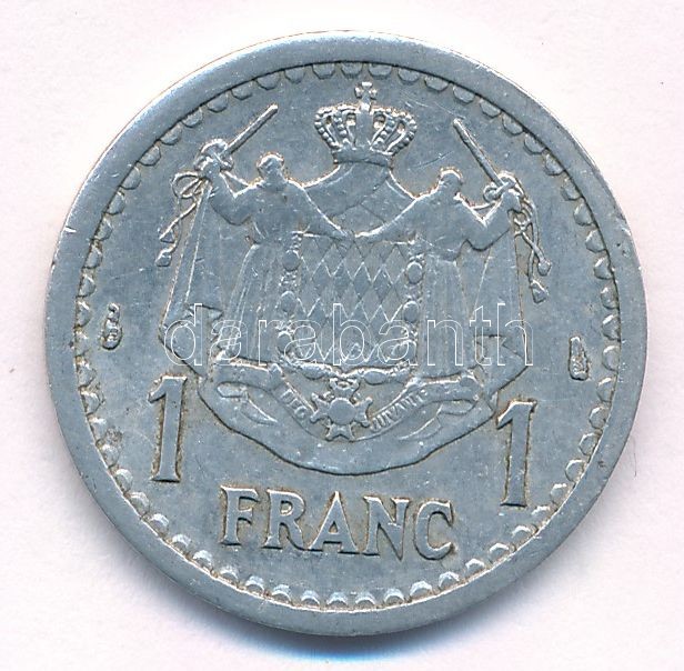 Leírás: Monaco 1943. 1Fr Al "II. Lajos" T:2