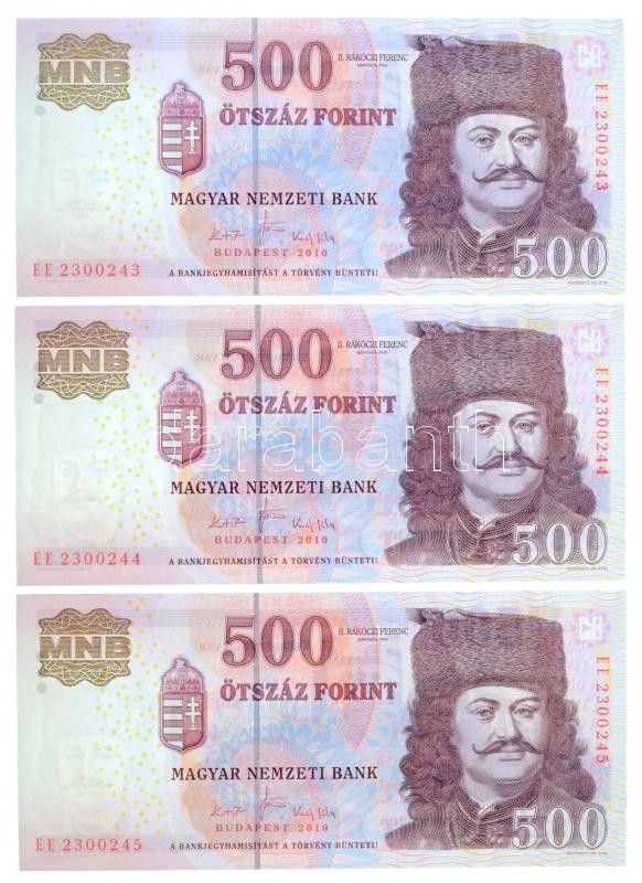 Leírás: 2010. 500Ft "EE" (3x) sorszámkövető T:I