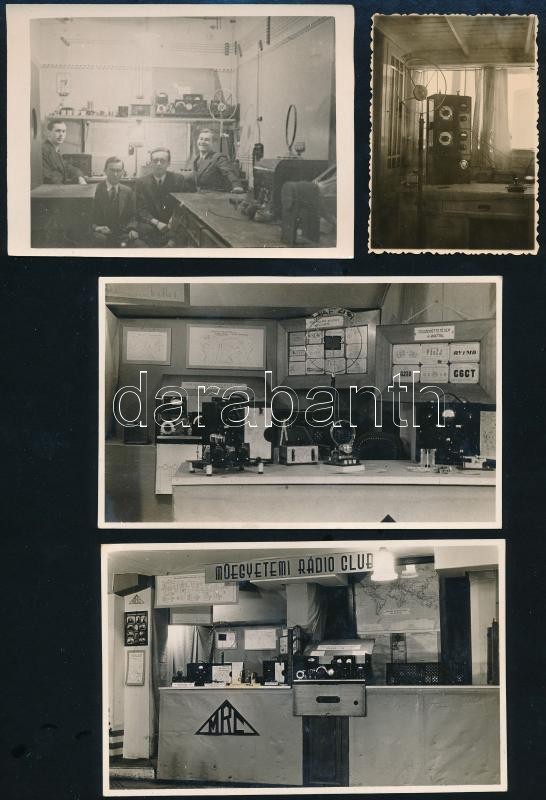 Leírás: cca 1932 Fotók a rádiózás hőskorából 6 db feliratozott fénykép, rádióközvetítés, műegyetemi rádióamatőr kör, stb.