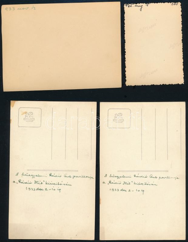 cca 1932 Fotók a rádiózás hőskorából 6 db feliratozott fénykép, rádiók... https://www.darabanth.com/hu/365-Gyorsarveres/365.0/Fotomuveszet/Foto~500033/cca-1932-Fotok-a-radiozas-hoskorabol-6-db-feliratozott-fenykep-radiokozvetites-mueg~II2110443