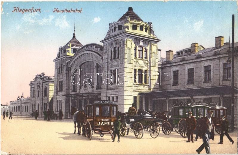 Klagenfurt, Hauptbahnhof / railway station, horse-drawn carriages https://www.darabanth.com/hu/365-Gyorsarveres/365.0/Kepeslapok/Ausztria~1500017/Klagenfurt-Hauptbahnhof-railway-station-horse-drawn-carriages~II2110980