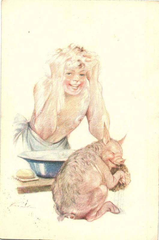 A cserkész tiszta. A Magyar Cserkészszövetség kiadása / Hungarian boy scout art postcard with pig s: Márton L. + "1933 Gödöllő IV. Jamboree" So. Stpl (EK)