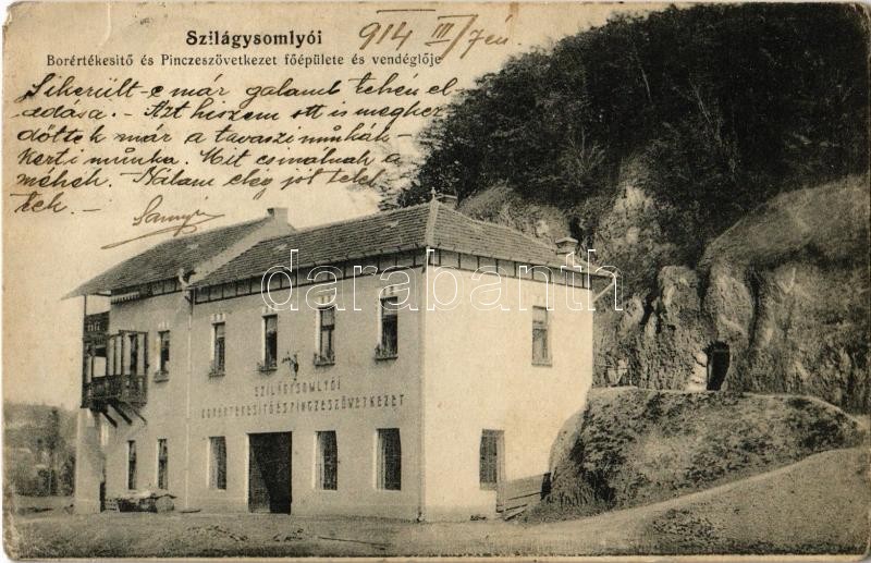 1914 Szilágysomlyó, Simleu Silvaniei; Borértékesítő és Pinceszövetkezet főépülete és vendéglője, étterem / main building and restaurant of the Wine sales and cellar cooperatives (kis sarokhiány / small corner shortage)