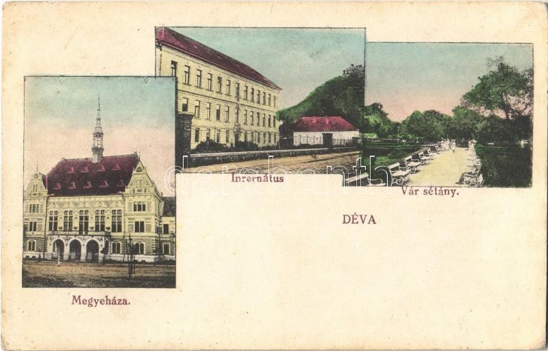 Leírás: 1918 Déva, megyeháza, internátus, Vársétány / county hall, boarding school, castle promenade