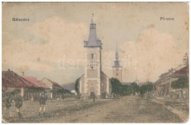 1916 Gálszécs, Secovce; Fő utca, templom / main street, church (kopott... https://www.darabanth.com/hu/365-Gyorsarveres/365.0/Kepeslapok/Felvidek~1500006/1916-Galszecs-Secovce-Fo-utca-templom-main-street-church-kopott-sarkak-worn-corners~II2113206