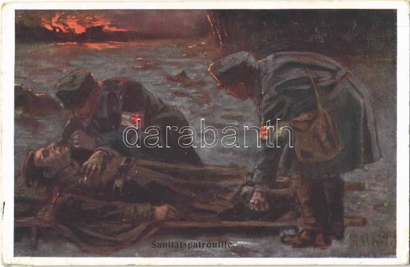 Leírás: 1915 Sanitätspatrouille / WWI Austro-Hungarian K.u.K. military, medics with injured soldier. B.K.W.I. 259-125. artist signed (small corner shortage)
