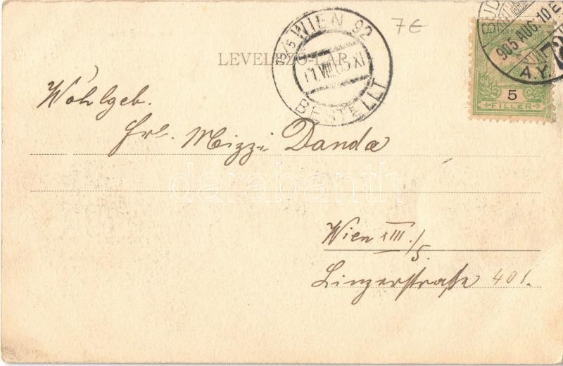 Leírás: 1905 Budapest VIII. Baross tér, Keleti pályaudvar, Baross szobor, villamosok, Gazdasági gépek üzlete (EB)
