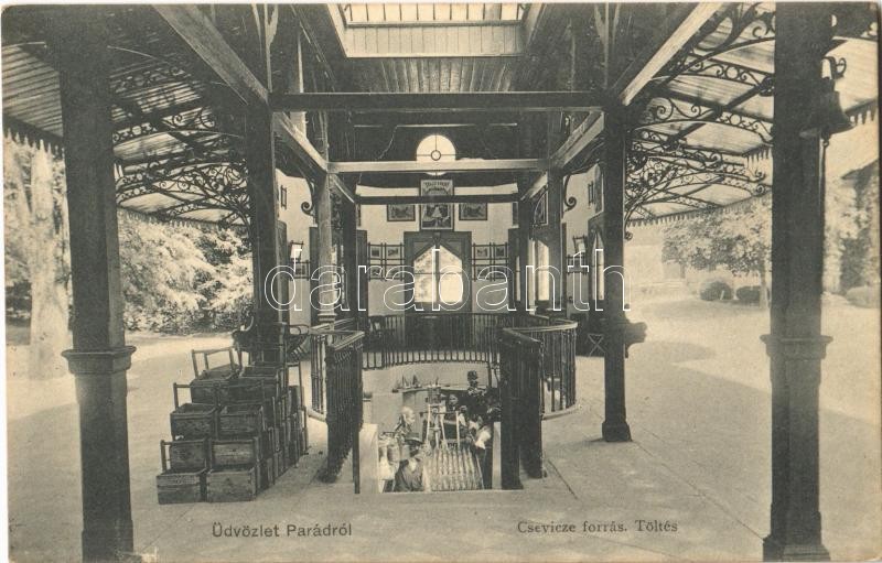 Leírás: 1911 Parád, Csevice-forrás, töltés. Parádi fogyasztási szövetkezet kiadása. Fényképezte Rónai Eger
