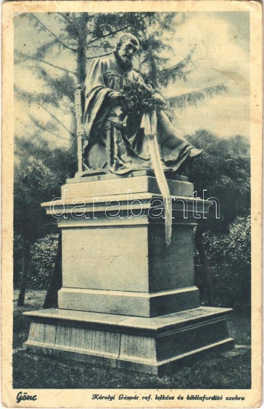 Gönc, Károlyi Gáspár református lelkész és bibliafordító szobra (EK) https://www.darabanth.com/hu/365-Gyorsarveres/365.0/Kepeslapok/Magyarorszag~1500004/Gonc-Karolyi-Gaspar-reformatus-lelkesz-es-bibliafordito-szobra-EK~II2112065