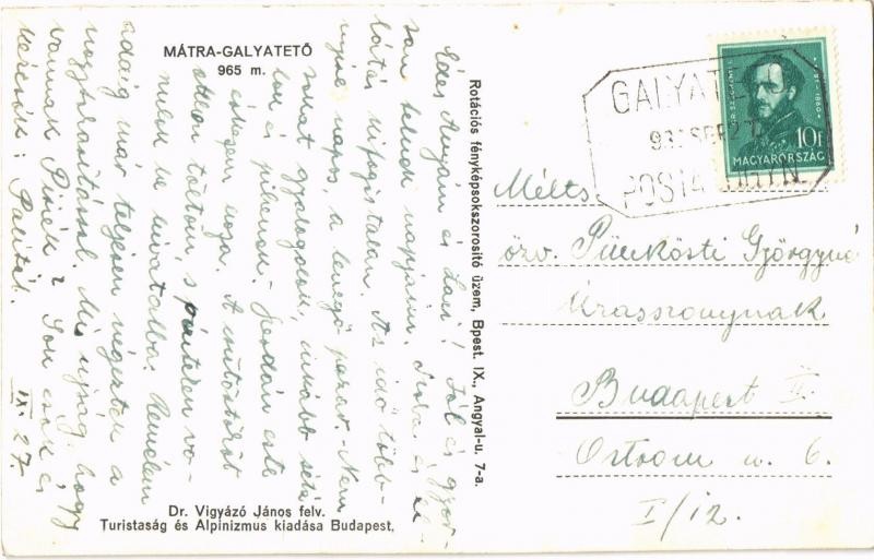Leírás: Mátra-Galyatető (Mátraszentimre), Dr. Vigyázó János felvétele. + "GALYATETŐ POSTAI ÜGYN."