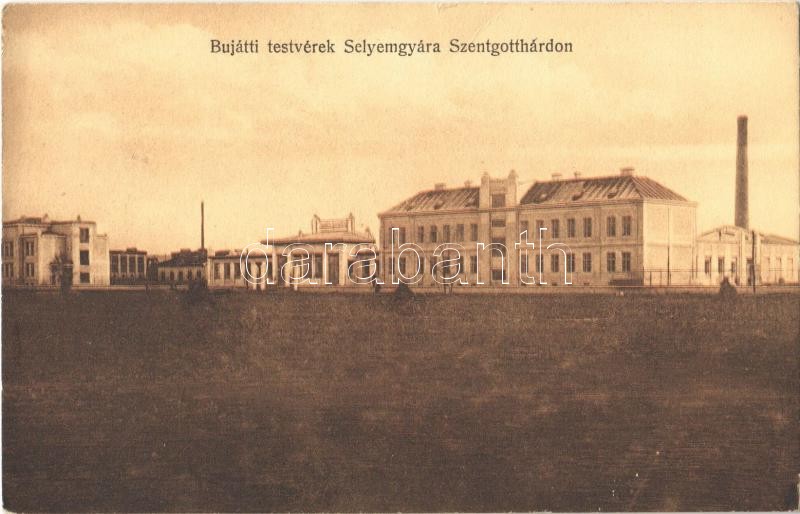 Szentgotthárd, Bujatti testvérek selyemgyára. Wellisch Béla kiadása https://www.darabanth.com/hu/365-Gyorsarveres/365.0/Kepeslapok/Magyarorszag~1500004/Szentgotthard-Bujatti-testverek-selyemgyara-Wellisch-Bela-kiadasa~II2112475