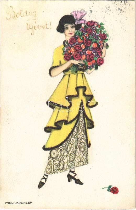 1917 Boldog Újévet! Fashion lady, New Year greeting. B.K.W.I. 641-2. s... https://www.darabanth.com/hu/365-Gyorsarveres/365.0/Kepeslapok/Muveszlapok~1500035/1917-Boldog-Ujevet-Fashion-lady-New-Year-greeting-BKWI-641-2-s-Mela-Koehler-r~II2112985