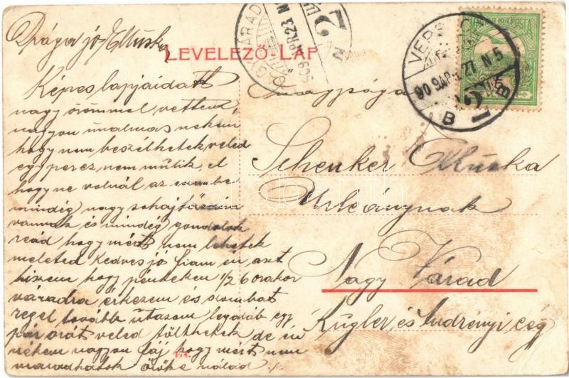 Leírás: 1909 Versec, Werschetz, Vrsac; Kápolnahegy, nyaralók. W. L. (?) 174. / Kapellenberg / chapel hill, villas (EK)