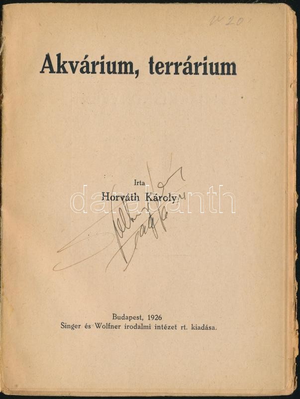 Horváth Károly: Akvárium, terrárium. Bp., 1926, Singer és Wolfner, 64 ... https://www.darabanth.com/hu/365-Gyorsarveres/365.0/Konyvek/Konyvek-Egyeb-ritkasagok~1000022/Horvath-Karoly-Akvarium-terrarium-Bp-1926-Singer-es-Wolfner-64-p-Kiadoi-papirkotes-~II2114545