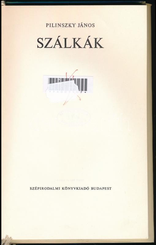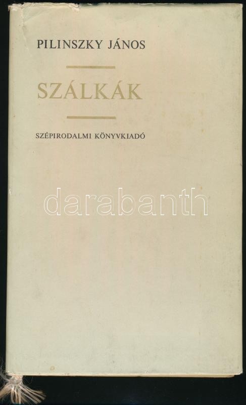 Leírás: Pilinszky János: Szálkák. Bp.,1975,Szépirodalmi. 2. kiadás. Kiadói kartonált papírkötés, kiadói szakadt papír védőborítóban, intézményi bélyegzőkkel.