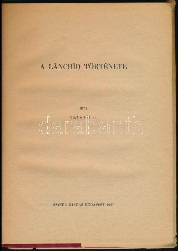 Vajda Pál: A Lánchíd története. Bp., 1947, Szikra. Kiadói vászonkötésb... https://www.darabanth.com/hu/365-Gyorsarveres/365.0/Konyvek/Konyvek-Tortenelem~1000004/Vajda-Pal-A-Lanchid-tortenete-Bp-1947-Szikra-Kiadoi-vaszonkotesben-kisse-szakadt-pa~II2111412