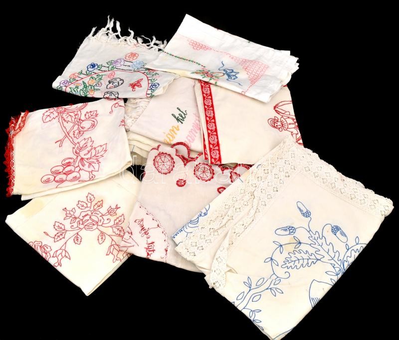 Leírás: 11 db falvédő és párnahuzat, közte több felirattal
