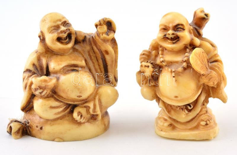 Leírás: 2 db műgyanta nevető Buddha figura, m: 5 cm