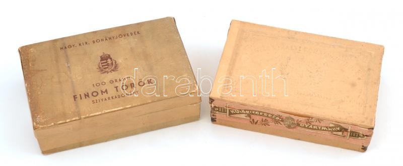 Leírás: 2 db régi szivarkadohány üres papírdoboz, 14×9×4 cm