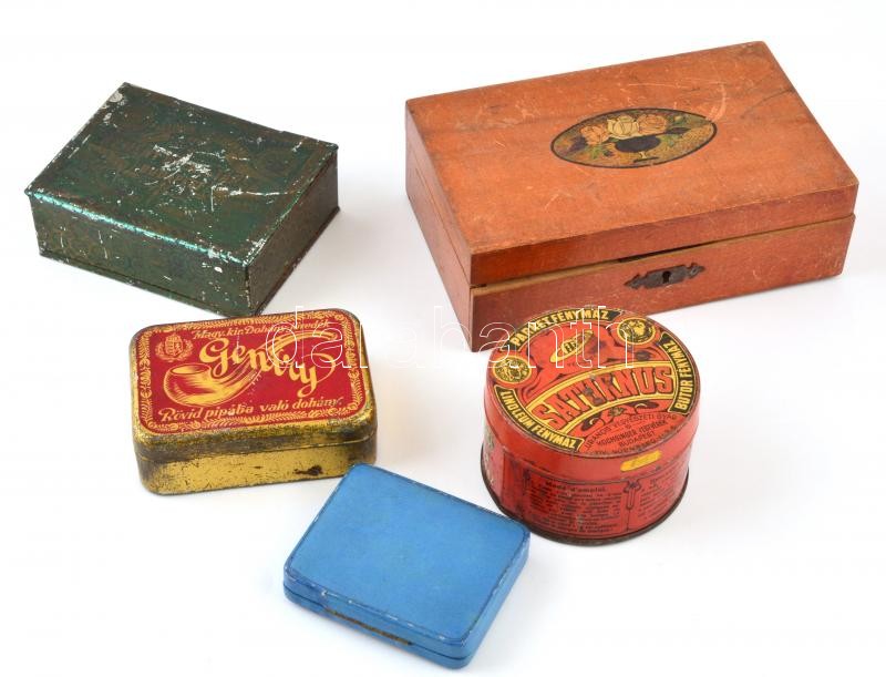 5 db régi fa és fém doboz, közte, pipadohányos, bútor fénymázas, 7x8x2... https://www.darabanth.com/hu/365-Gyorsarveres/365.0/Mutargy-papirregiseg-egyeb/Bolhapiac~500012/5-db-regi-fa-es-fem-doboz-kozte-pipadohanyos-butor-fenymazas-7x8x2-es-19x12x6-cm-kozo~II2109012