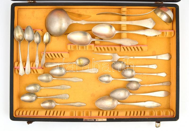 Alpakka evőeszközkészlet, dobozban, 21 db https://www.darabanth.com/hu/365-Gyorsarveres/365.0/Mutargy-papirregiseg-egyeb/Bolhapiac~500012/Alpakka-evoeszkozkeszlet-dobozban-21-db~II2115837