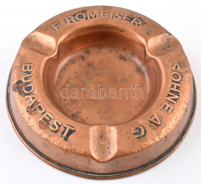 F. Romeismer & Söhne A.G. Budapest feliratos réz hamutál, h: 14,5 cm https://www.darabanth.com/hu/365-Gyorsarveres/365.0/Mutargy-papirregiseg-egyeb/Bolhapiac~500012/F-Romeismer-Sohne-AG-Budapest-feliratos-rez-hamutal-h-14-5-cm~II2110261