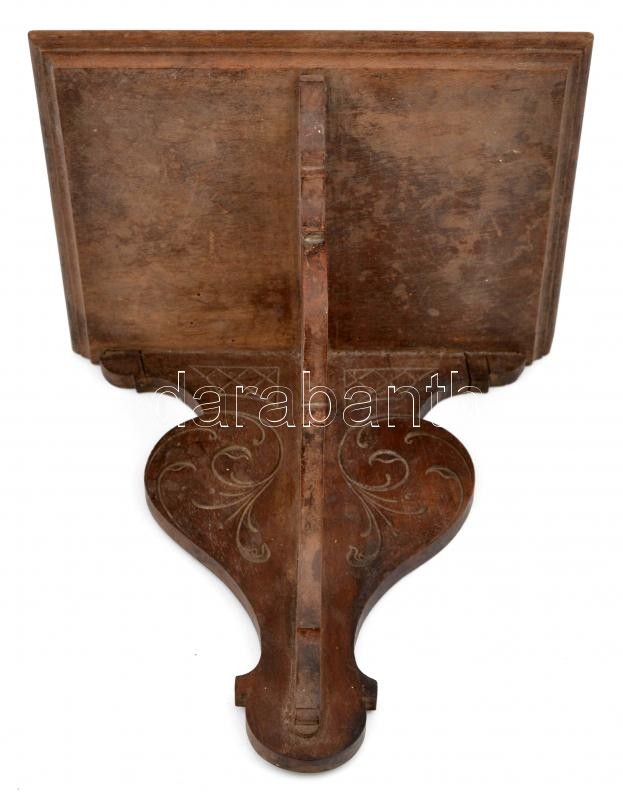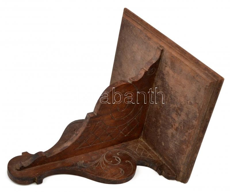 Leírás: Fa sarokpolc, szúette lyukakkal, 23×19 cm