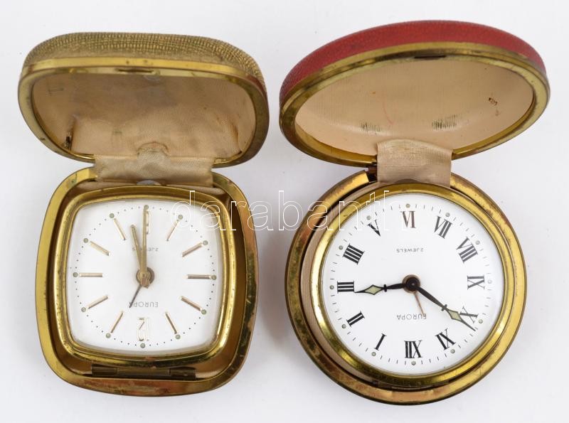 Leírás: Régi kulcsos lemezjátékok (autó, repülő, madár, stb.) + 4 db működő utazóóra, használt diplomatatáskában, 28×41×10 cm