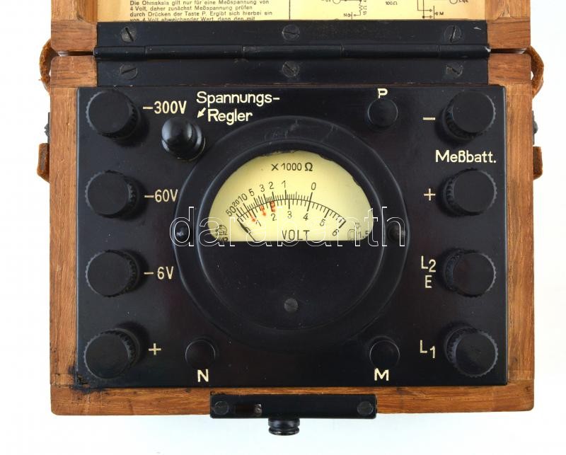 Leírás: Régi német ellenállásmérő műszer, jó állapotban, 15x7x11 cm