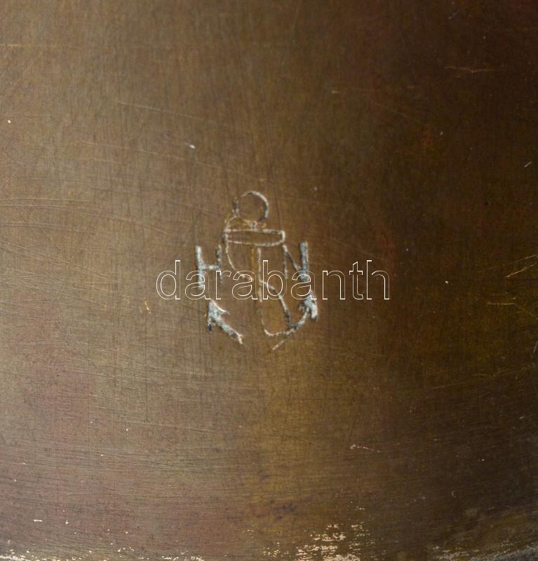 Leírás: Régi réz hajóskürt, jelzett, repedéssel, h:22 cm