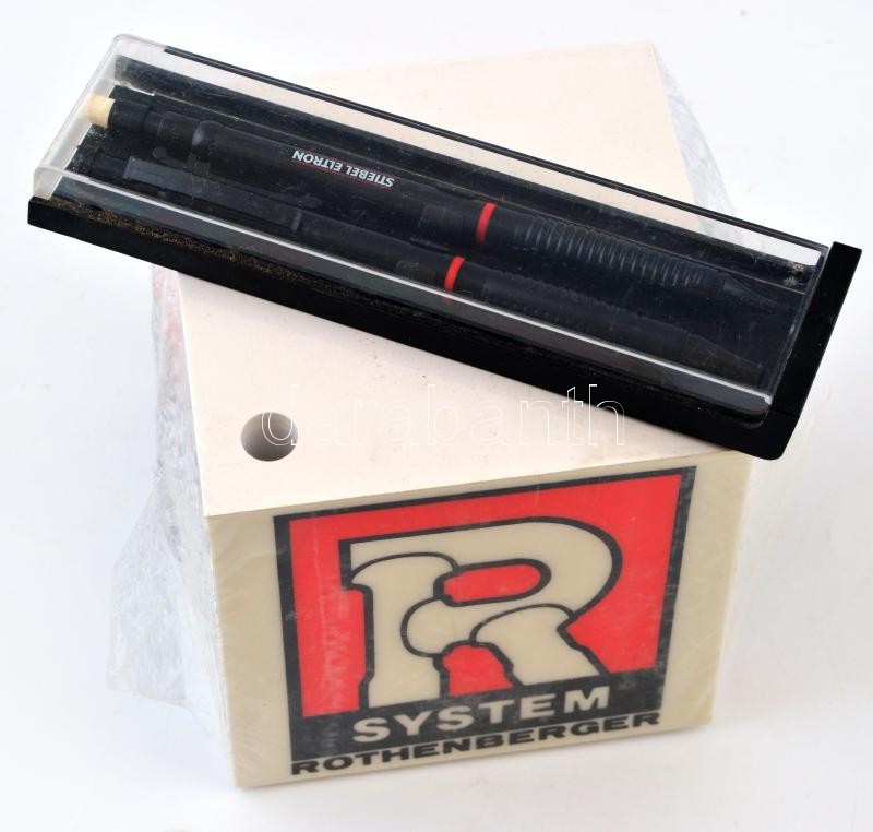 Leírás: Rotring toll és ceruza tokban + írókocka