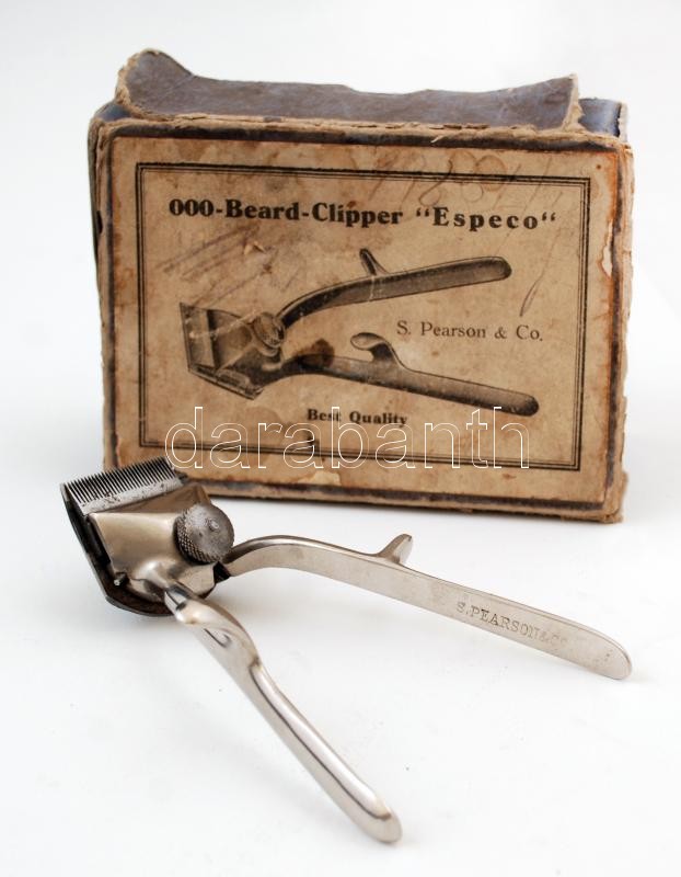 S. Pearson & Co. 000-Beard-Clipper "Especo" borotva eredeti dobozában https://www.darabanth.com/hu/365-Gyorsarveres/365.0/Mutargy-papirregiseg-egyeb/Bolhapiac~500012/S-Pearson-Co-000-Beard-Clipper-Especo-borotva-eredeti-dobozaban~II2110576