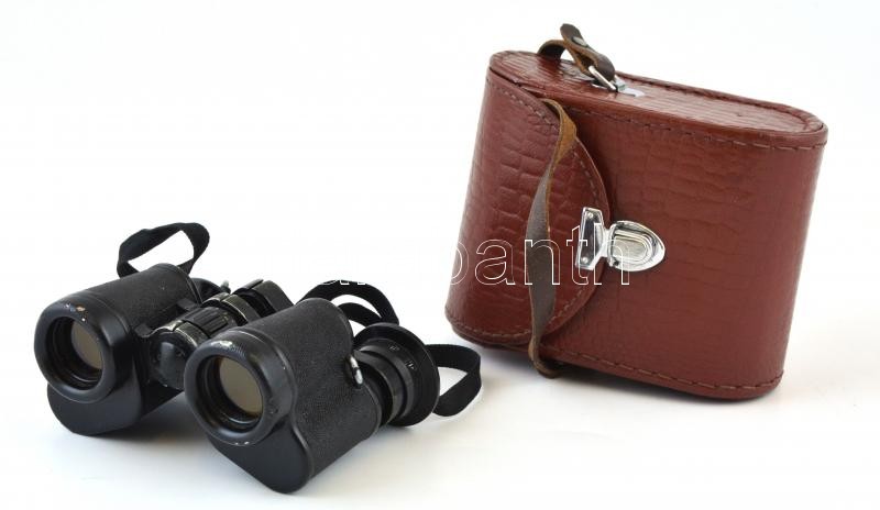 Leírás: Szovjet távcső, bőr tokkal, 9×7 cm