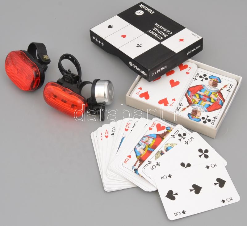 Vegyes bolha tétel, biciklis lámpák és csengő, francia kártya csomag https://www.darabanth.com/hu/365-Gyorsarveres/365.0/Mutargy-papirregiseg-egyeb/Bolhapiac~500012/Vegyes-bolha-tetel-biciklis-lampak-es-csengo-francia-kartya-csomag~II2109956