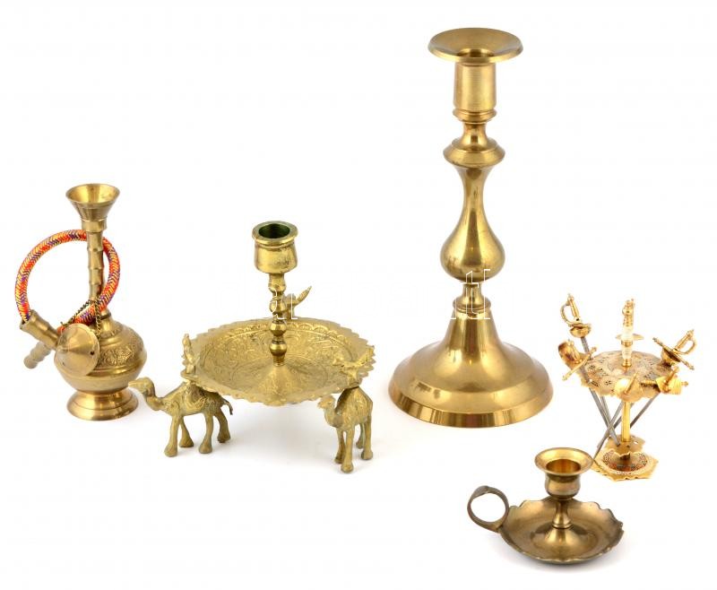 Leírás: Vegyes réz tárgy tétel, gyertyatartó, szendvicstűk, stb., 5 db