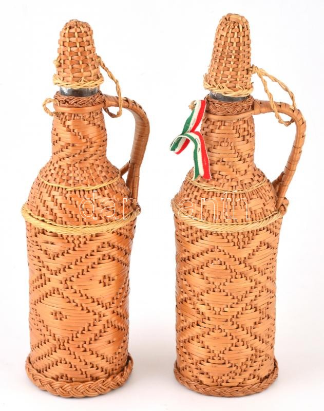 Leírás: Vesszőfonatos üvegpalack, 2 db, jó állapotban, m: 29 cm