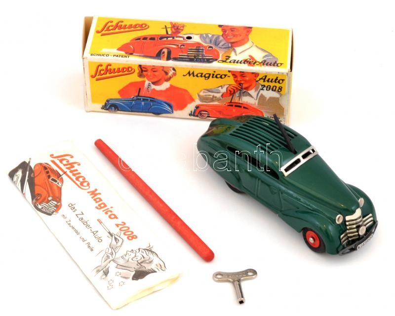 Leírás: Schuco Magico Auto 2008 felhúzhatós, többfunkciós játékautó, kulccsal, pálcával, felhúzóval, eredeti dobozában, leírással, h: 14 cm