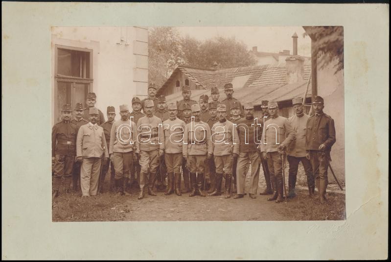 Leírás: 1914 szeptember, Ungvár. Katonák. Németh József pecséttel jelzett fotója. 22x15 cm kartonon