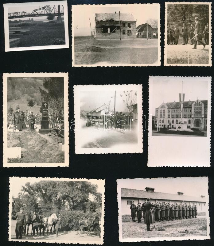 Leírás: 1939 Katonai életképek a II. világháborúból, közte sok kolozsvári fotó, 32 db, 6×8 és 4×6 cm
