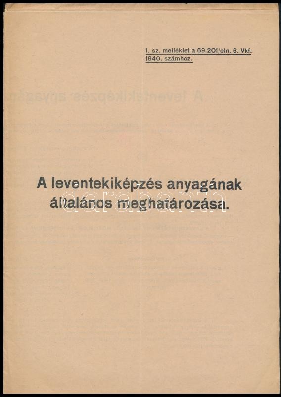 Leírás: 1940 A leventekiképzés anyagának általános meghatározása