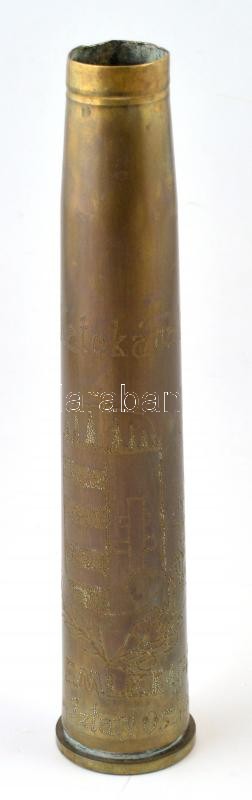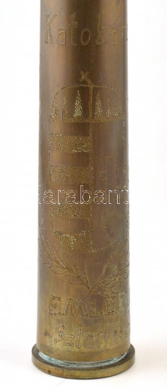 1942 Címeres, vésett töltényhüvely váza. Katókának emlékül Szatry Oszk... https://www.darabanth.com/hu/365-Gyorsarveres/365.0/Mutargy-papirregiseg-egyeb/Militaria~500026/1942-Cimeres-vesett-toltenyhuvely-vaza-Katokanak-emlekul-Szatry-Oszkolbol-31-cm~II2112526