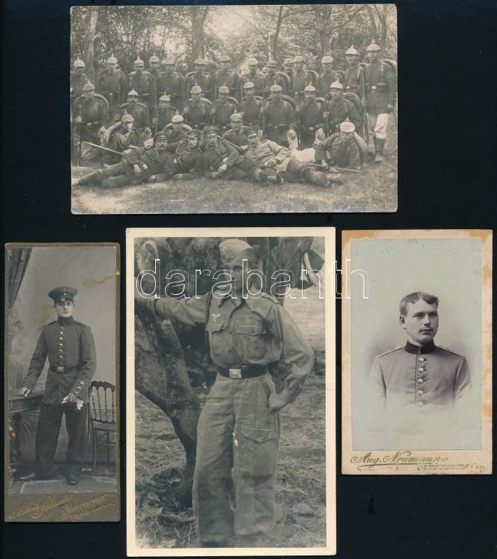 Leírás: cca 190-1942 Német katonákat ábrázoló 4 db fotó, 10x5 és 9x14 cm közti méretben