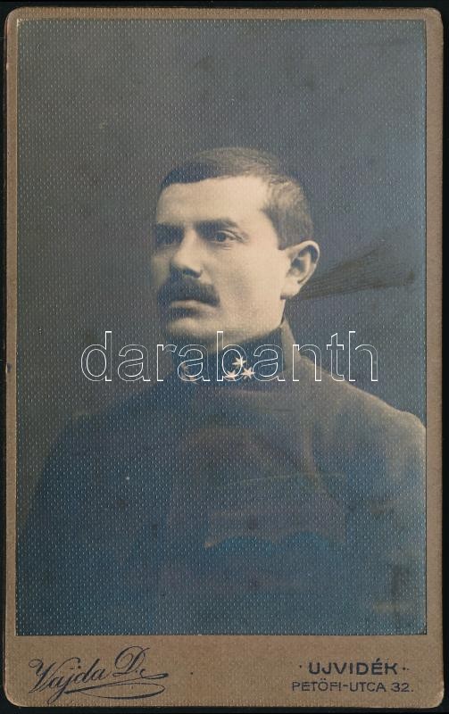 Leírás: cca 1915 Katonaportré, keményhátú fotó Vajda Dezső műterméből, 10×6 cm