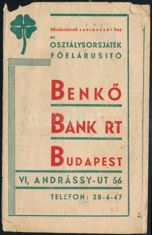 cca 1935 Benkő Bank Rt. osztálysorsjáték sorsjegy tokja, szakadozott, ... https://www.darabanth.com/hu/365-Gyorsarveres/365.0/Mutargy-papirregiseg-egyeb/Okmanyok~500018/cca-1935-Benko-Bank-Rt-osztalysorsjatek-sorsjegy-tokja-szakadozott-serult-kisse-hianyos~II2109460