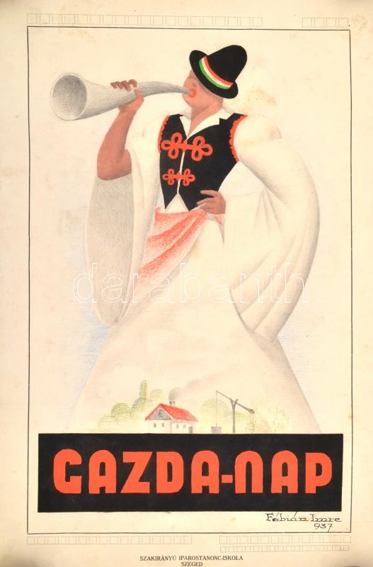 1937 Fábián Imre (1926-2011): Gazda-nap, plakátterv, vegyes technika, ... https://www.darabanth.com/hu/365-Gyorsarveres/365.0/Mutargy-papirregiseg-egyeb/Plakat~2000022/1937-Fabian-Imre-1926-2011-Gazda-nap-plakatterv-vegyes-technika-papir-42C39729-cm~II2116381