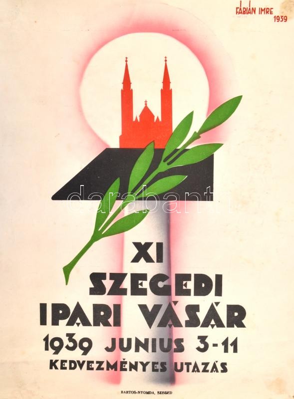 1939 Fábián Imre (1926-2011): XI. Szegedi Ipari Vásár, plakát, 40×30 c... https://www.darabanth.com/hu/365-Gyorsarveres/365.0/Mutargy-papirregiseg-egyeb/Plakat~2000022/1939-Fabian-Imre-1926-2011-XI-Szegedi-Ipari-Vasar-plakat-40C39730-cm~II2116383