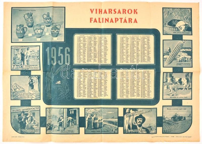 Leírás: 1956 Viharsarok Falinaptára, Bp. Egyetemi-ny., hajtásnyomokkal, 49x69 cm