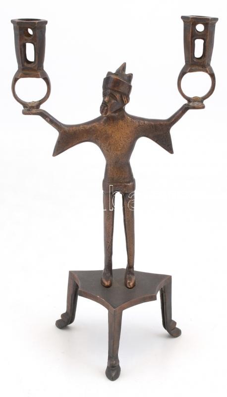 Leírás: Jelzés nélkül: Figurális gyertyatartó. Bronz. 24 cm
